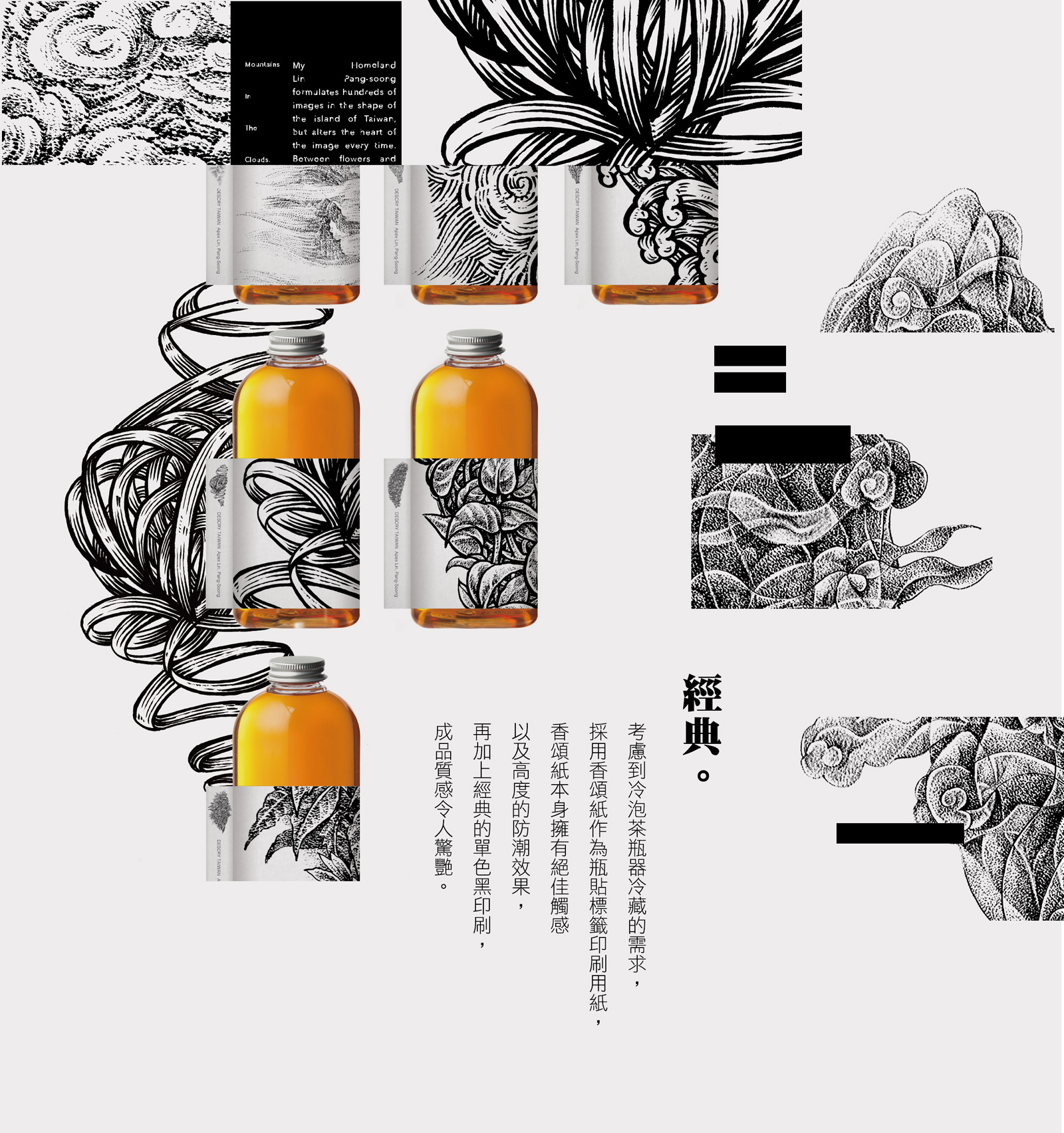這裡的每幅台灣作品,背後都有一段故事和思念。這次藉由林磐聳老師的圖像開發作為茶葉包裝,釋放出一段想像空間,讓我們能看見兩種不一樣台灣,一種為林磐聳老師所繪製的台灣,而另一種則為我們所想像出的台灣。讓我們一起用想像建構出台灣的模樣。